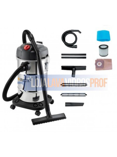 Equipado com um motor silencioso e de alta eficiência que permite uma potência máxima de 1600 W, leve e estável, com corpo em aço inoxidável altamente durável que garante uma longa vida útil ao aspirador, independentemente do tempo de uso. Possui um reservatório coletor de 30 litros | com capacidade útil de sólidos: 20L e capacidade útil de líquidos: 24L.