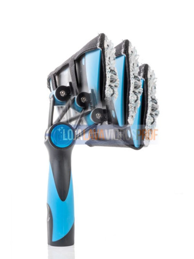 Velo de fibra acrílica Moerman com tira central de tecido abrasivo para ser usado com suporte T , perfeito para limpar e ensaboar todos os tipos de vidros, janelas, grandes janelas e espelhos para posterior secagem com limpa-vidros.