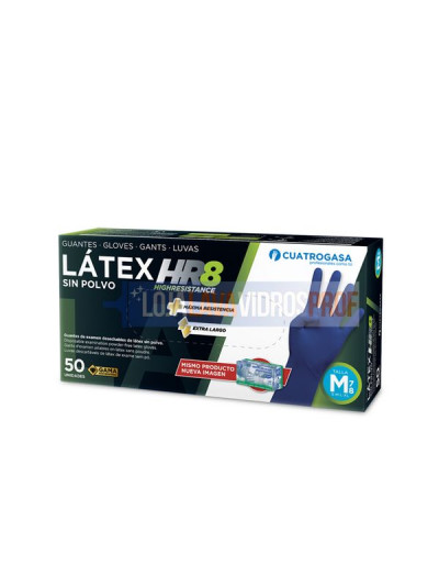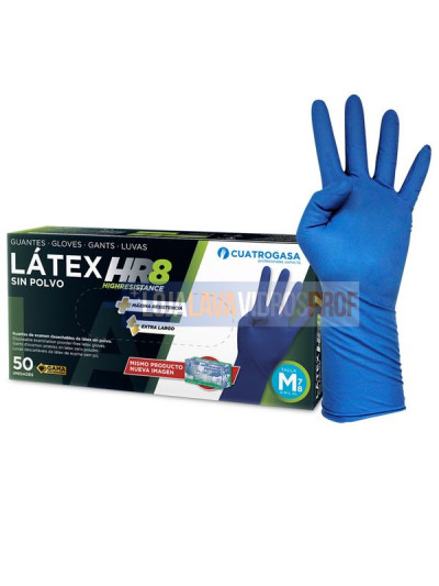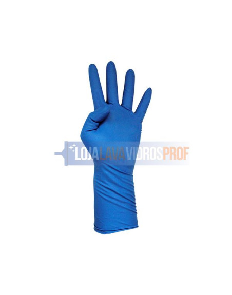 Luvas azuis descartáveis de látex sem pó.