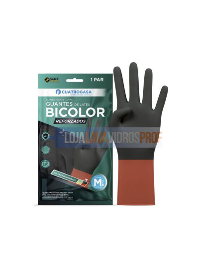 Luvas reforçadas bicolor de látex 100% natural.